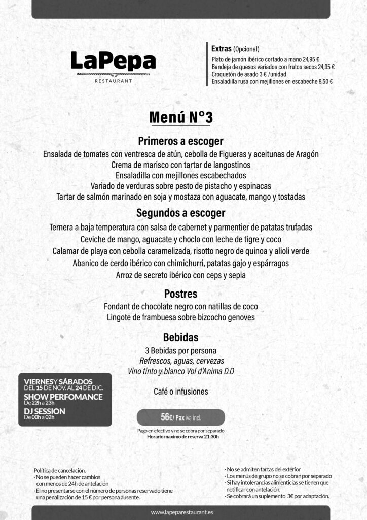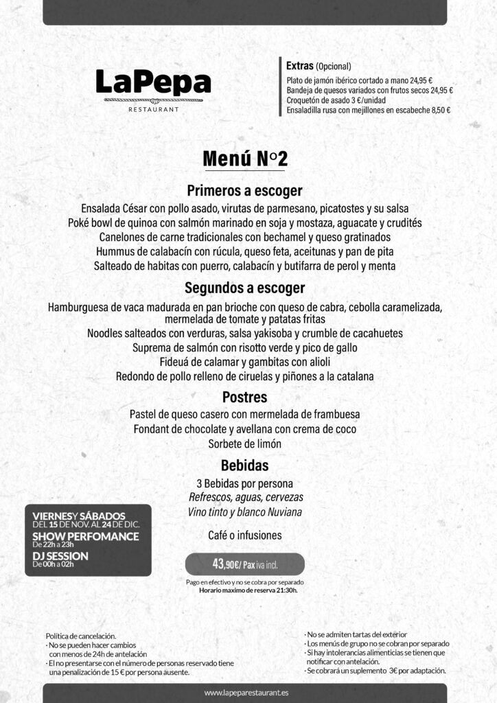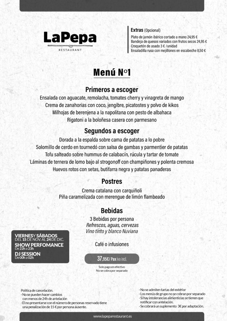 En LaPepa Restaurante, sabemos lo importante que son tus celebraciones. Por eso, ofrecemos una amplia variedad de menús diseñados para adaptarse a tus necesidades y hacer que tus ocasiones sean inolvidables.